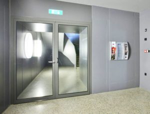 Стационарные перегородки с высокой звукоизоляцией (до 46 дБ) защищают посетителей от уличного шума. Вход в медицинское учреждение может быть оборудован системой, представляющей собой 76-миллиметровый алюминиевый профиль, заполненный двойным стеклом. Это стекло отлично пропускает свет снаружи, а профили тонированы в соответствии с цветовой гаммой интерьера.